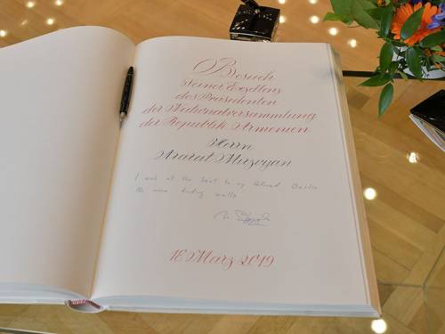 Auf Einladung des Präsidenten des Deutschen Bundestages Dr. Wolfgang Schäuble besucht der Präsident der Nationalversammlung der Republik Armenien Ararat Mirzoyan Deutschland mit einer Delegation vom 18. bis zum 21. März 2019.