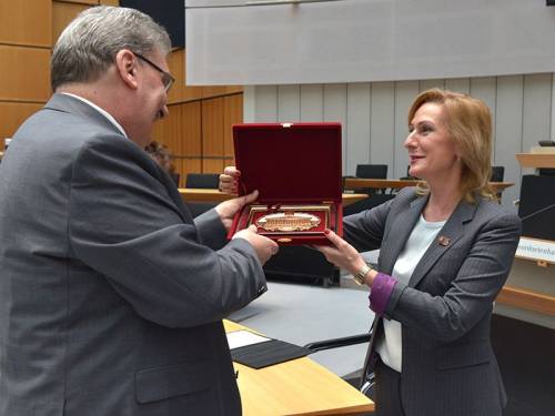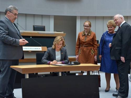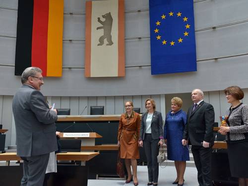 Der Präsident des Abgeordnetenhauses von Berlin Ralf Wieland empfing die Gäste am Montag, dem 9. April 2018, um 16.30 Uhr im Plenarsaal. Die Delegation zeichnete sich in das Gästebuch des Hauses ein. Neben einem Gespräch mit Mitgliedern des Ausschusses für Inneres, Sicherheit und Ordnung am Dienstag, dem 10. April 2018, um 9.30 Uhr besuchen die Gäste aus Moskau auch die Direktion West der Berliner Feuerwehr und die Sozialstiftung Köpenick. Es ist Wunsch der sechsköpfigen Delegation unter der Führung von Inna Svyatenko, der Vorsitzenden des Ausschusses für Sicherheit und Mitglied der Fraktion Vereinigtes Russland, den Schwerpunkt der Reise auf Sicherheits- und Pflegethemen zu legen.