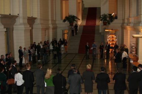 Nach der Sitzung des Ältestenrates am Dienstag, dem 8. Dezember 2015, wurde es im Foyer des Abgeordnetenhauses musikalisch: Von 14.30 Uhr bis 15.00 Uhr spielten die Bläser der Evangelischen Kirche Berlin-Brandenburg-schlesische Oberlausitz Advents- und Weihnachtslieder für die Abgeordneten und alle Mitarbeiter und Gäste des Hauses. Das Adventssingen stand unter Leitung von Landesposaunenwart Sigfried Zühlke.