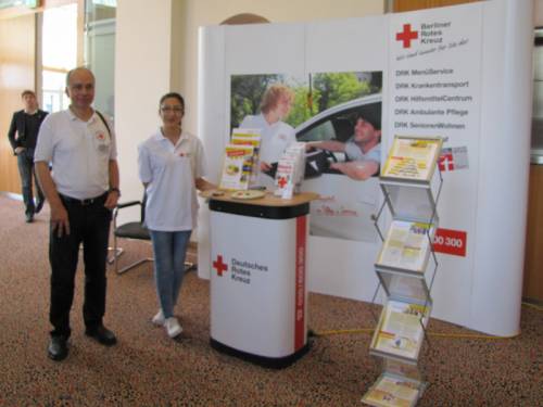 Iris Hardt und Jens Quade erhielten die Medaille als Mitglieder des Deutschen Roten Kreuzes. Frau Hardt ist im Sanitäts- und Betreuungsdienst sowie in der Flüchtlingshilfe tätig. Herr Quade ist seit vielen Jahren Einsatzleiter bei großen Einsätzen, z.B. bei Veranstaltungen auf der Straße des 17. Juni.