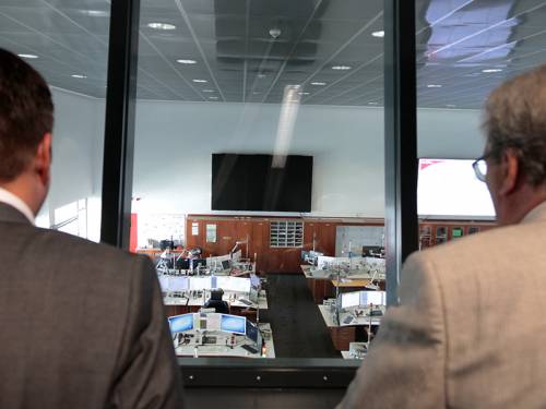 Parlamentspräsident und Innensenator besichtigen die größte Leitstelle Deutschlands