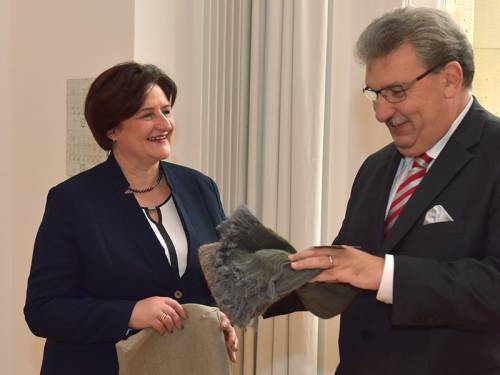 Litauische Parlamentspräsidentin trägt sich ins Goldene Buch ein