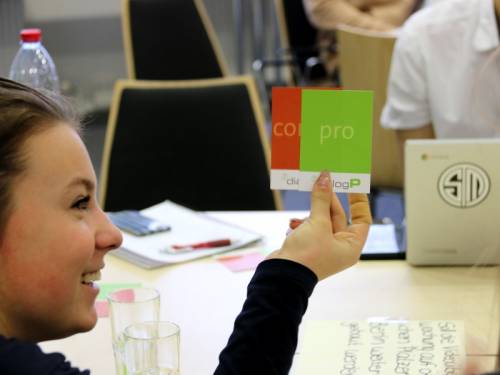 Noch bis zum 15. Oktober 2018 können sich Berliner Schulklassen für das Bildungsformat dialogP anmelden. In Speed-Dating-Manier konfrontieren Schülerinnen und Schüler Abgeordnete mit ihren politischen Anliegen. Im fliegenden Wechsel beziehen die Abgeordneten an Schwerpunkt-Stationen Stellung zu konkreten politischen Fragen der Jugendlichen, etwa dem Ausbau des öffentlichen WLAN-Netzes. Dabei können die Schülerinnen und Schüler die Antworten mit ihrem persönlichen Profil abgleichen: Passt diese Haltung zu meinen Vorstellungen? Mit wem kann ich mich identifizieren? Wer ist meine Stimme wert? Und an welche Partei möchte ich mich eventuell langfristig binden?