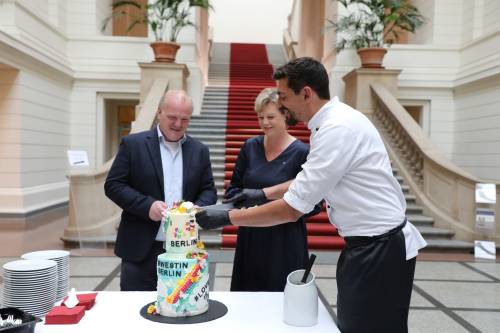 Präsidentin Seibeld schnitt "Kiss Kiss Berlin Regenbogenkuchen" im Abgeordnetenhaus an