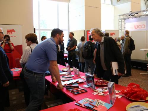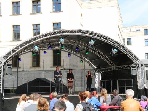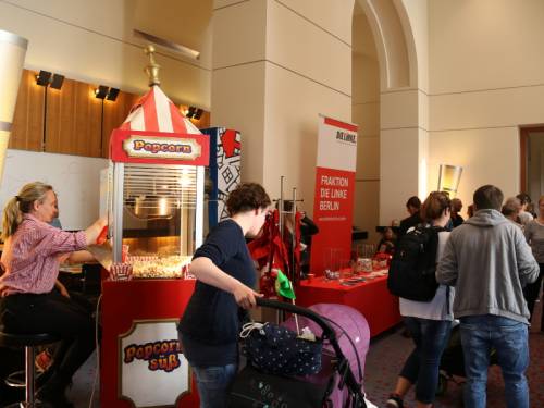 Neben den Fraktionen im Abgeordnetenhaus präsentierten sich wieder Berliner Landeseinrichtungen, so die Berliner Beauftragte für Datenschutz und Informationsfreiheit, der Rechnungshof Berlin, die Landeszentrale für politische Bildung, der Berliner Beauftragte zur Aufarbeitung der SED-Diktatur. Und auch die Parlamentarische Vereinigung von ehemaligen Abgeordneten war vertreten und ins Programm eingebunden. So gab es nachmittags eine Diskussion der Ex-Abgeordneten im Plenarsaal zum Thema „25 Jahre Abgeordnetenhaus von Berlin im Preußischen Landtag“.