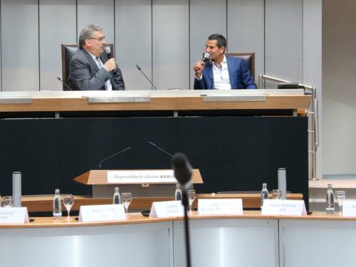 Selten sind die Plenarsäle im Bundesrat und Abgeordnetenhaus so gut besucht wie beim Tag der offenen Tür. Im Plenarsaal des Abgeordnetenhauses zog die Diskussionsrunde der Fraktionsvorsitzenden, moderiert von Mitri Sirin, viele Menschen an. Und auch im Casino, wo die Fraktionen sich mit eigenen Ständen präsentierten, herrschte ein reges Treiben.