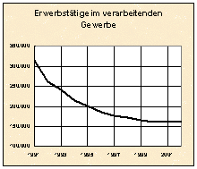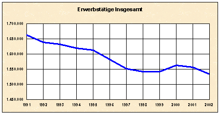 Die wirtschaftlichen Entwicklungsperspektiven sind deutlich hinter den Erwartungen zu Beginn der 90er Jahre zurückgeblieben. Ein drastischer Rückgang der Beschäftigten insbesondere im Bereich des produktionsgeprägten Gewerbes und ein Anstieg der Arbeitslosenquote auf ca. 18% (Juli 2003) stellen die deutlichen Folgen einer tiefgreifenden De-Industrialisierung insbesondere im Ostteil der Stadt dar. Die strukturellen Veränderungen konnten bisher nur teilweise durch zunehmende Tertiärisierung und Neuansiedlungen ausgeglichen werden.