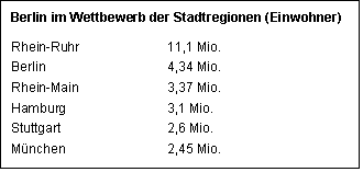[63] Vgl. BerlinStudie (Stadt des Wissens und Stadt der Vernetzung von Wissenschaft und Wirtschaft)