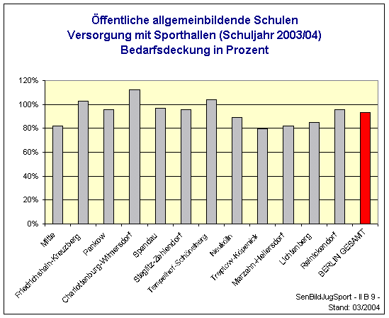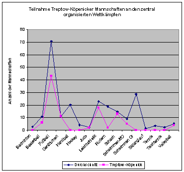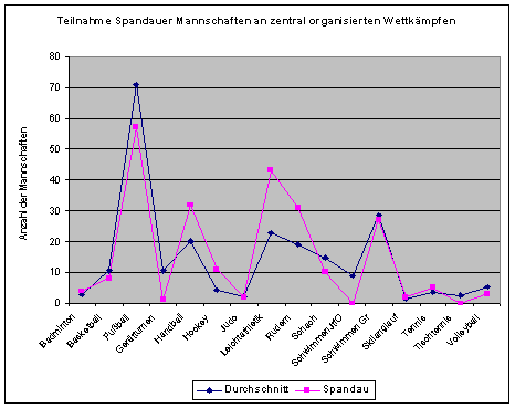 In Spandau gibt es umfangreiche außerunterrichtliche Sportangebote und die Beteiligung von Schulmannschaften am Schulsport-Wettkampfproramm ist sowohl bei den Grund- als auch bei den Oberschulen positiv einzuschätzen.