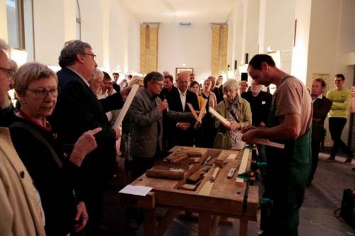 Nachdem der Präsident des Abgeordnetenhauses von Berlin, Ralf Wieland, die Gäste begrüßte, sprachen Dr. Klaus Lederer, Bürgermeister und Senator für Kultur und Europa in Berlin, Prof. Jörg Haspel, Vorsitzender des Stiftungsrates der Deutschen Stiftung Denkmalschutz und Johannes Zerger, Geschäftsführer der Internationalen Jugendgemeinschaftsdienste, bei der Ausstellungseröffnung. Im Anschluss wurde die Werkstattecke, mit praktischen Einblicken in die Arbeit und Handwerkstechniken, präsentiert.