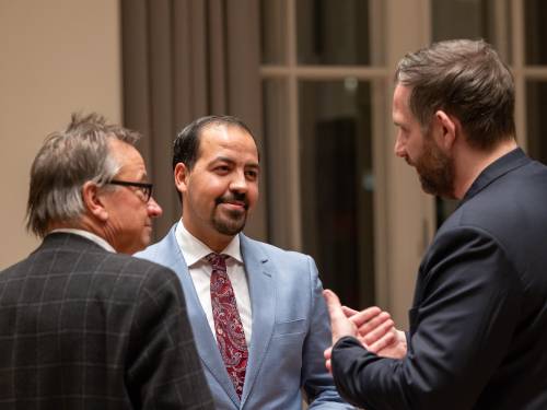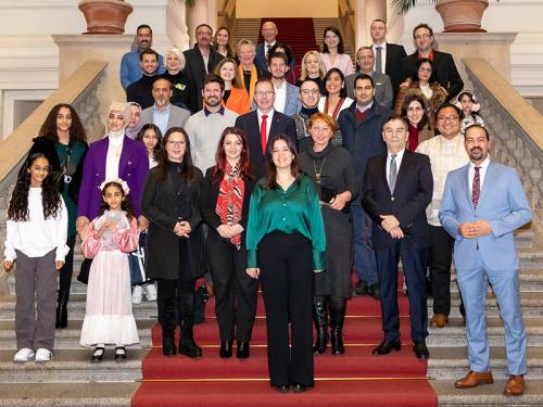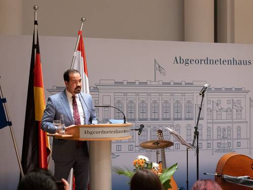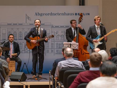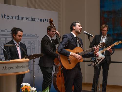 Das Abgeordnetenhaus von Berlin empfing am Mittwoch, dem 23. November 2022, Berliner Neubürgerinnen und Neubürger, die vor Kurzem die deutsche Staatsbürgerschaft erhalten haben. Parlamentspräsident Dennis Buchner begrüßte die Gäste um 18.00 Uhr im Festsaal des Hauses. Der Sportintegrationscoach Mohammed EL Ouahhabi hielt den Festvortrag. Er kommt aus Marokko und hat dort Germanistik studiert. Heute arbeitet Mohammed EL Ouahhabi beim Landessportbund Berlin. Für die musikalische Umrahmung sorgte die Band Griyo mit Ricardo Grijalva (Gesang), Björn Bergek (Gitarre), Ander Perrino (Kontrabass) und Christian Betancourt (Percussion).