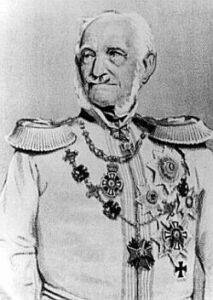 Der Generalfeldmarschall Friedrich Heinrich Ernst Graf von Wrangel schlug 1848 die revolutionäre Bewegung in Berlin nieder und stellte die Autorität des Königs wieder her.