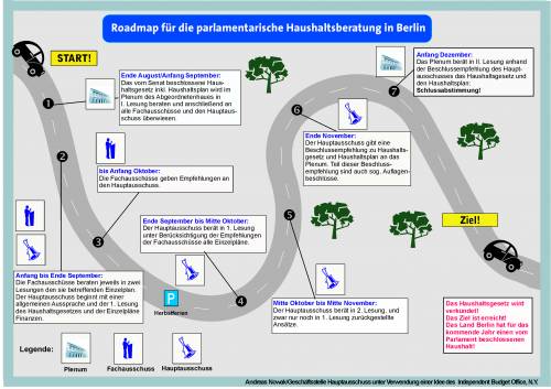 Die zu erwartenden Einnahmen aus Steuern und Gebühren werden auf die Aufgaben des Landes verteilt. Mit den Einnahmen steht ein begrenzter Rahmen an Mitteln zur Verfügung, der großteils durch Verpflichtungen Berlins beispielsweise im Sozialbereich und der Bildung bereits fest gebunden ist. Die Aufteilung auf weitere Aufgaben (z.B. innere Sicherheit, Wirtschaftsförderung, Kultur) erfolgt im politischen Abstimmungsprozess des Abgeordnetenhauses.