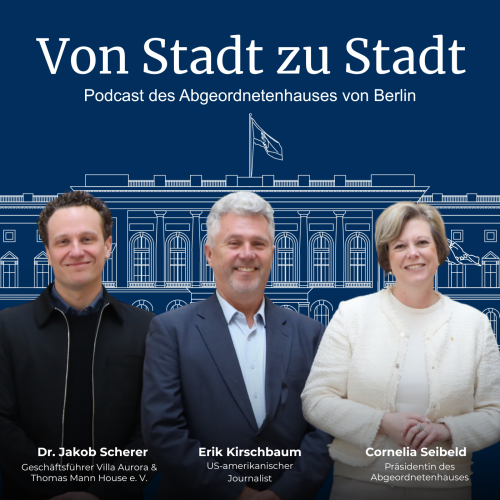 In der zweiten Folge geht es um Berlin und Los Angeles. Mit ihren Gästen, Dr. Jakob Scherer, Geschäftsführer des Villa Aurora & Thomas Mann House e. V., und dem US-amerikanischen Journalisten Erik Kirschbaum, tauscht sich Parlamentspräsidentin Seibeld über den transatlantischen Dialog in Krisenzeiten aus. Wie sind die beiden Städte miteinander verbunden? Und traut sich Berlin manchmal zu wenig zu – etwa mit Blick auf Olympia?