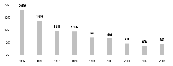 100 €) zurückgeführt wurden und sich im Jahre 2003 damit nur noch auf