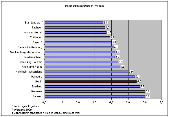 Ende des Berichtsjahres gab es in Berlin 272.802 bei den Arbeitsämtern registrierte Arbeitslose. Die Arbeitslosenquote betrug 16 Prozent.