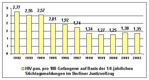 1. Nach befürwortendem Gutachten über einen Schweizer Versuch wird der Senat gebeten, an Gefangene – ohne Maßregelvollzug – in einem vierjährigen Modellversuch zur Aids- und Hepatitisprophylaxe sterile Einwegspritzen abzugeben.