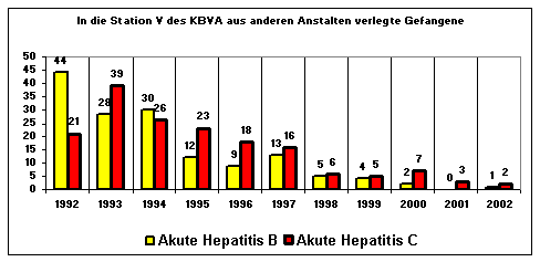 Hinzu käme eine erhebliche Gefährdung der in der Substituiertenstation in der Teilanstalt II untergebrachten Gefangenen und des dort praktizierten Projekts. Dieses soll die Gefangenen motivieren, Perspektiven für die Zeit nach der Haftentlassung zu entwickeln, sich auf ein Leben jenseits der Drogenszene und der Beschaffungskriminalität vorzubereiten und die Gestaltung ihres Lebens wieder selbst in die Hand zu nehmen. Der Wegfall der Drogenbeschaffung, der Verzicht auf illegale Drogen, der Wegfall der ständigen Eigenverschuldung der Drogenabhängigen und ein dadurch bedingter entspannterer Haftverlauf setzen dabei Kapazitäten frei, die von vielen Gefangenen zu positiven Veränderungen ihres Verhaltens und ihrer bisheriger Lebensgewohnheiten bereits während der Haft genutzt werden. Das Ersatzmittel Methadon kann dabei dauerhaft eingenommen werden. Die Einnahme weiterer Drogen wie etwa der intravenöse Beikonsum von Heroin kann jedoch die Wirkung des Ersatzmittels verstärken und zu gefährlichen Vergiftungserscheinungen mit Atemdepression bis hin zum Atemstillstand führen. Wie auch im Rahmen der medizinischen Begleitforschung des Instituts für Rechtsmedizin der Universität Hamburg festgestellt wurde, erscheint es daher dringend geboten, nach Strategien zu suchen, die es Methadon-Substituierten erleichtern, ein bestehendes Spritzenaustauschprogramm nicht als jederzeit wirksame Verführung zum Konsum betrachten zu müssen. Eine konsequente Trennung von Substitution und Spritzenaustauschprophylaxe wäre deshalb erforderlich. Diese ließe sich jedoch unter den gegebenen Umständen in der JVA Tegel nicht verwirklichen.