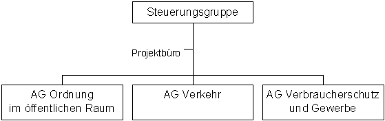 Die Senatsverwaltung für Inneres hat zur Umsetzung dieses Beschlusses die Federführung übernommen und in Zusammenarbeit mit den Senatsverwaltungen für Wirtschaft, Arbeit und Frauen, für Stadtentwicklung und für Gesundheit, Soziales und Verbraucherschutz, den Bezirken Mitte, Treptow-Köpenick, Friedrichshain-Kreuzberg, Charlottenburg-Wilmersdorf und Lichtenberg sowie dem Polizeipräsidenten eine Projektgruppe „Ordnungsangelegenheiten“ (ProOrd) eingerichtet, die zum Ziel hat, die rechtlichen und organisatorischen Voraussetzungen zur Errichtung der bezirklichen Ordnungsämter zu schaffen.