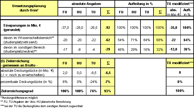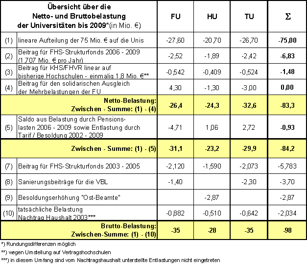 [1] Die Differenz beruht darauf, dass die Freie Universität ursprünglich die Zuschussabsenkung aufgrund des dritten Nachtragshaushalts 2003 im vollen Umfang berücksichtigt hat und tatsächliche Entlastungen nicht gegengerechnet hat.