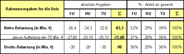 23. September 2003 und das Abgeordnetenhaus am 11. Dezember 2003 zugestimmt haben, sieht einen Konsolidierungsbeitrag der Hochschulen bereits in der Laufzeit der geltenden Hochschulverträge sowie eine kontinuierliche Absenkung des Gesamtplafonds der Vertragshochschulen von 2006 bis zum Jahr 2009 vor. Des Weiteren wurde festgelegt, dass die in § 6 Abs. 1 und 2 der Hochschulverträge vom