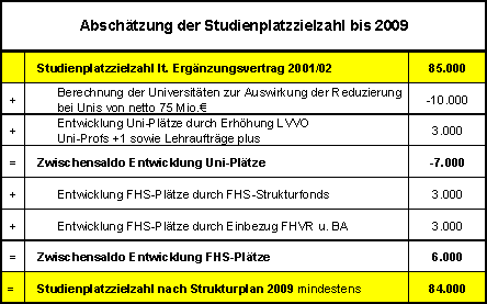 strukturelle Planungsgrundlage für die Laufzeit der Hochschulverträge 2006 bis