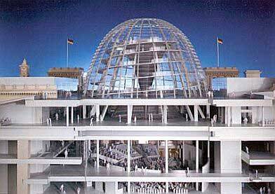 Die Ausstellung präsentierte die Baumaßnahmen von Parlament und Regierung am Spreebogen: den Umbau des Reichstagsgebäudes zum Deutschen Bundestag, das neue Kanzleramt am westlichen Spreebogen sowie die Parlamentsneubauten Dorotheenblöcke und Alsenblock/Luisenblock.