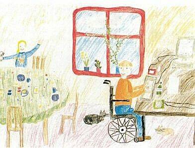 Bei den 30 ausgestellten Zeichnungen waren zwei Themenschwerpunkte zu erkennen: Einerseits stellten die Kinder die Frage, wie sie ihrem MS-kranken Familienmitglied helfen können, andererseits zeigten sie Trauer über die Auswirkungen der Krankheit auf den Alltag.