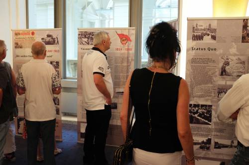 Der Präsident des Abgeordnetenhauses von Berlin Ralf Wieland eröffnete die Ausstellung zusammen mit der Kuratorin Freya Klier am Dienstag, dem 11. August 2015, um 17.30 Uhr in der Wandelhalle des Abgeordnetenhauses von Berlin.