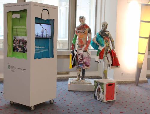 Eine Ausstellung in der Wandelhalle des Abgeordnetenhaues zeigte eindrucksvoll die Bilder der Aktion und hat die ungeheure Tütenmenge, die jede Stunde neu ausgegeben wird, verdeutlicht.