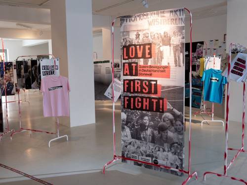 Die Ausstellung "Love at First Fight" wurde gemeinsam vom Goethe-Institut und dem Schwulen Museum Berlin geschaffen und wird vom 14. Juli bis zum 18. August 2022 in der Wandelhalle des Abgeordnetenhauses von Berlin präsentiert.