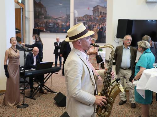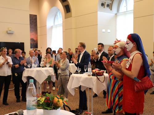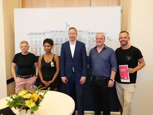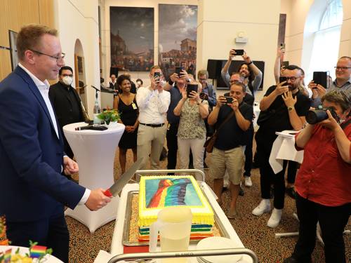 Die Ausstellung wurde im Zusammenhang mit dem ersten Regenbogenempfang des Präsidenten des Abgeordnetenhauses von Berlin am 20.07.22 eröffnet. Neben einer Einführung in die Ausstellung durch Dr. Birgit Bosold und Carina Klugbauer, gab es eine Geschrächsrunde zum Thema "Queere Hauptstadt Berlin - Aktuelle Herausforderungen unter dem Regenbogen" mit Patrick Erhardt vom Berliner CSD e. V., Lucina Akintaya vom LSVD Berlin - Brandenburg, Bastian Finke von MANEO und Dr. Birgit Bosold vom Schwulen Museum Berlin. Musikalisch begleitet wurde der Abend durch das Trio "Easy Living". Anschließend gab es einen Empfang und einen Rundgang durch die Ausstellung in der Wandelhalle.